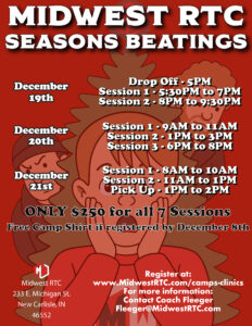 Join us for our annual Seasons Beatings Christmas Camp. December 19-21. Register by December 8 for a free camp t-shirt!