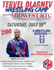 Introducing Nebraska University Assistant Coach Tervel Dlagnev wrestling camp. Coach Dlagnev is one of the best coaches in the entire country. We will be going 3 sessions. 9-11 EST. 12-2 EST. 3-5 EST.
